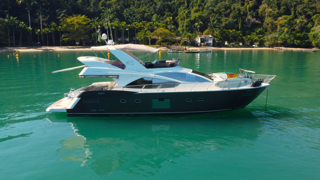 Embarcação completa, com 3 suítes, plataforma Hidráulica Submergível, enxoval completo, antena Sky, Internet Wi-fi e dois tripulantes a bordo.